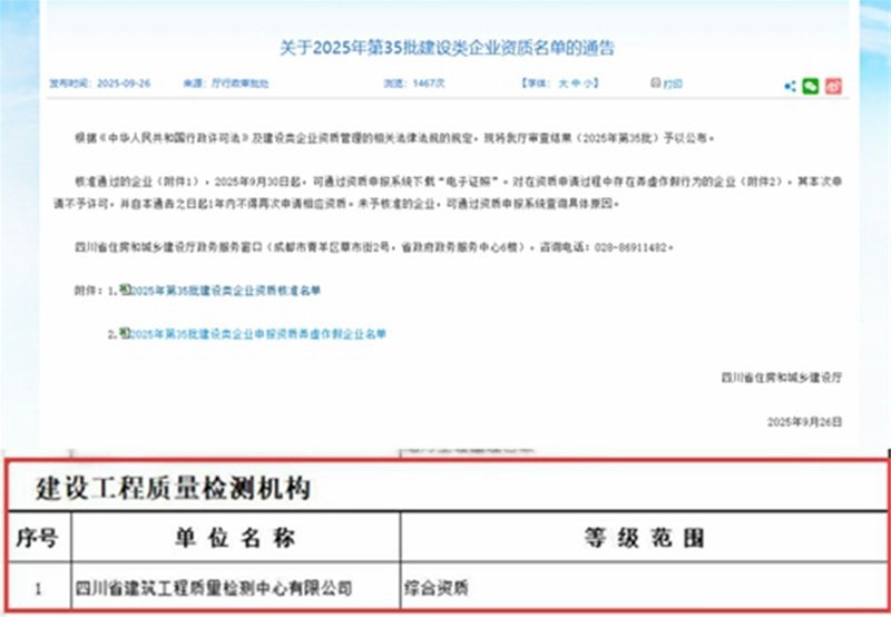 建科院獲全省首個“建設工程質量綜合檢測資質” 2025-09-30
